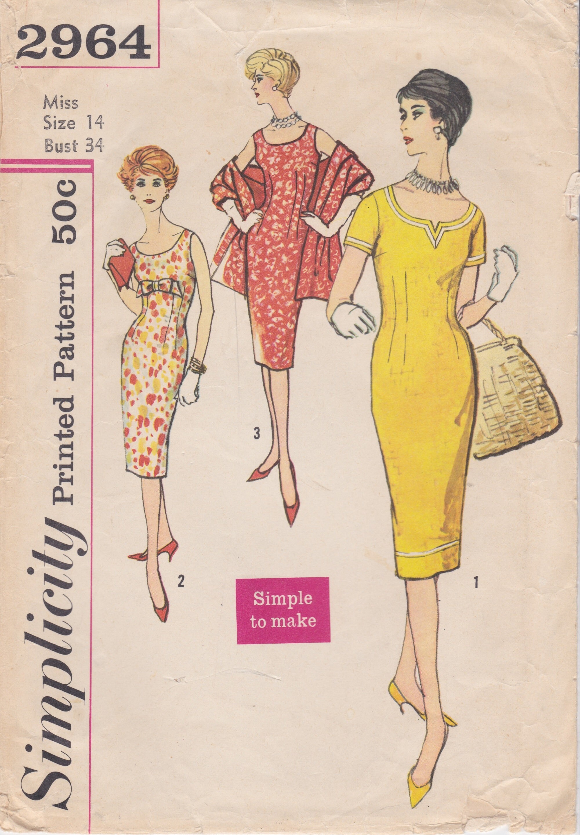 Simplicity 2964 Vintage 1950s Sewing Pattern Sheath Dress Etsy